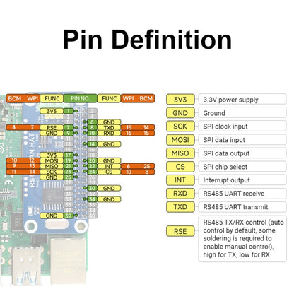 Waveshare 14882 For Raspberry Pi RS485 SPI CAN HAT Bus Module